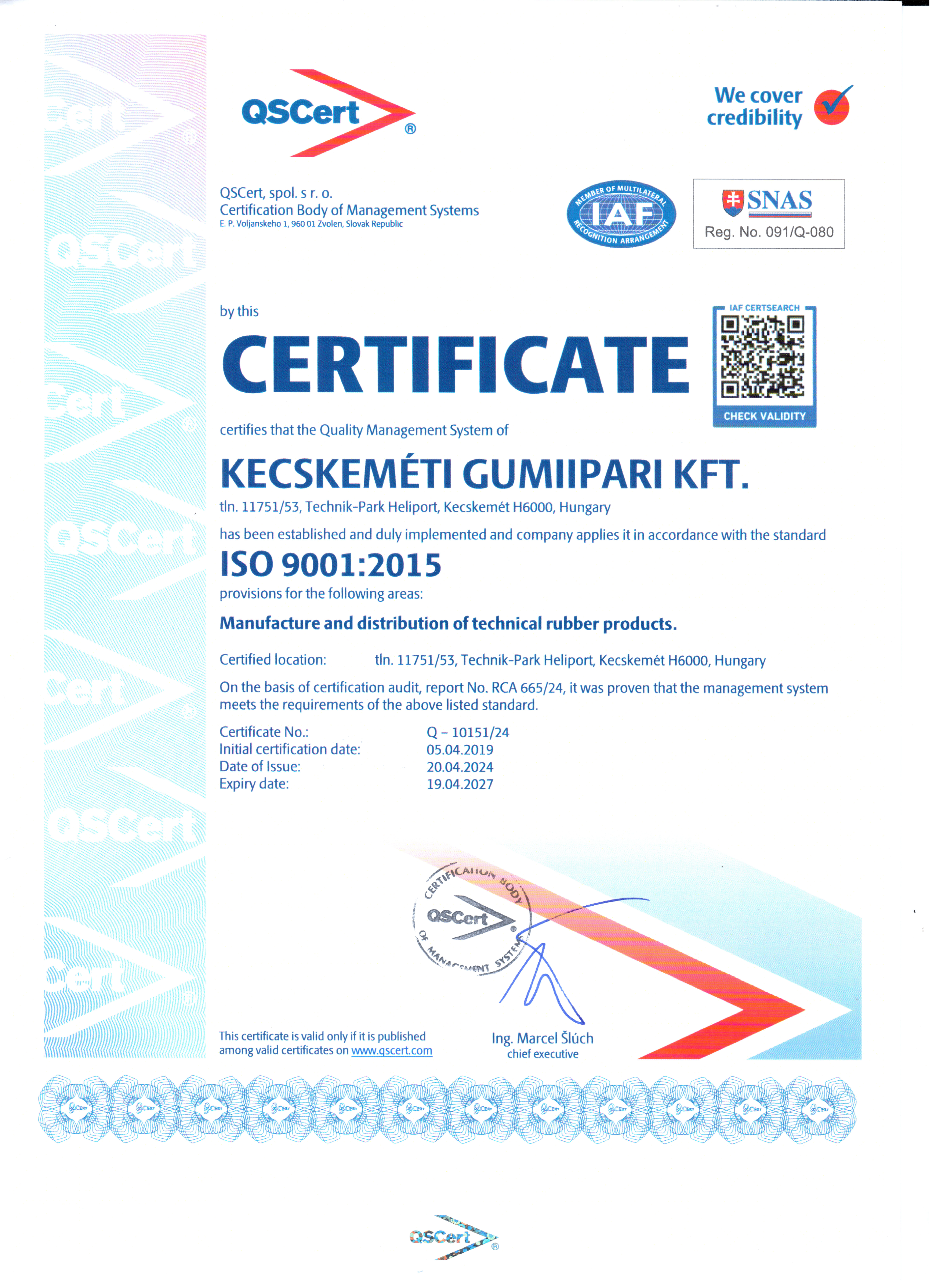 Our company is certified by ISO9001:2015, with which we ensure the high level serving of customer needs.